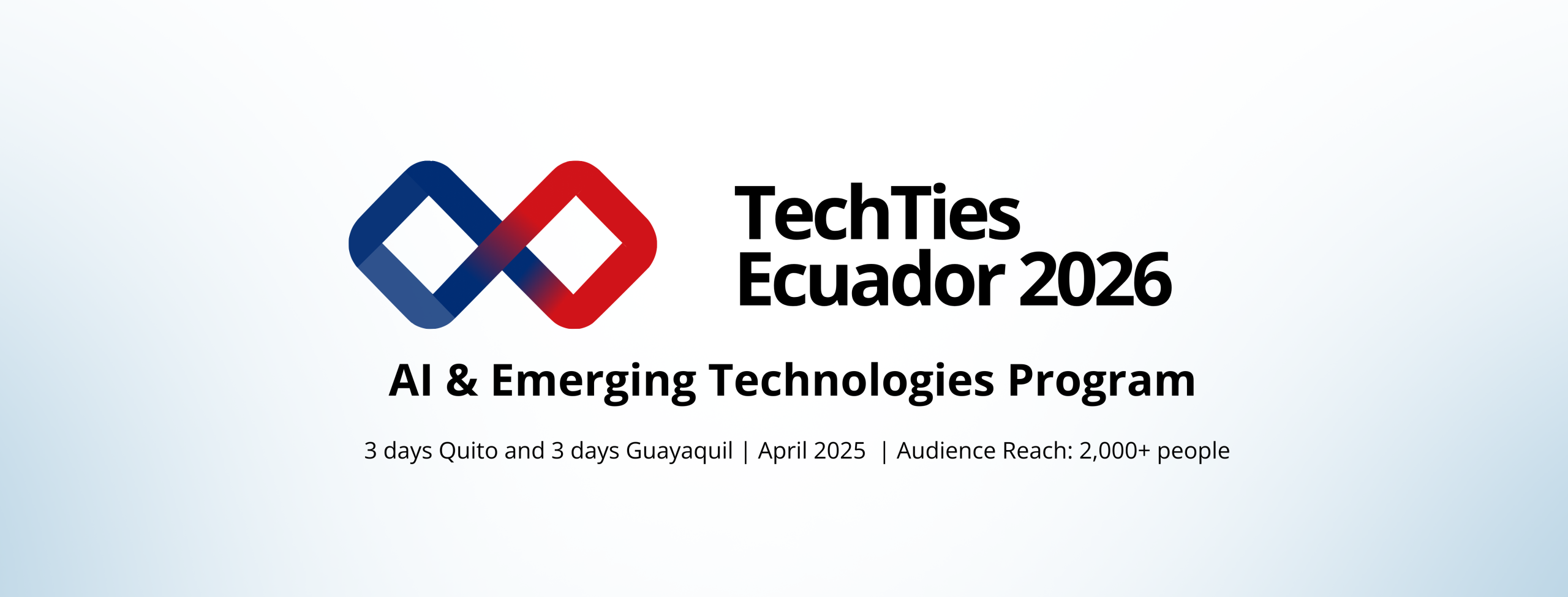 TechTies is a national six-consecutive-day program that connects U.S. technology, innovation, and entrepreneurship. It showcases how U.S.-developed AI and emerging technologies can drive productivity, economic growth, and digital development in Ecuador.